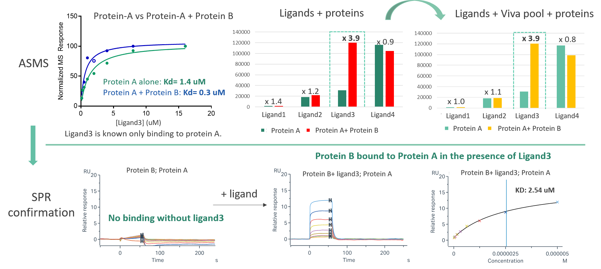 Viva has advanced affinity screening platforms, including ASMS, SPR, crystal soaking, and TSA screening technologies, which meet customers' needs for developing new generation E3 ligase ligands or novel target protein binding molecules for screening. ASMS is an upgrade of traditional high-throughput technologies, which does not depend on radioactivity, fluorescent labeling, or enzymatic activity. ASMS allows low compound concentration, is an easy development method, has high screening throughput, can be performed in solution, and is suitable for fragment library screening and large drug-like compound library screening. Viva has chosen to combine three technologies - ultrafiltration ASMS, ultracentrifugation ASMS, and molecular exclusion ASMS- to design a fast, flexible, and autonomous technology platform for screening almost all soluble protein targets through Viva's unique compound libraries. In addition, we have developed a targeted technical method applicable to molecule screening of molecular glue.