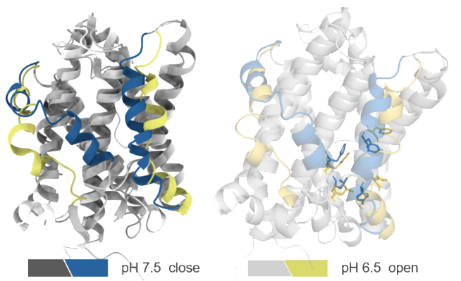 In order to investigate the TMBIM6's capabilities in detecting unique ICE change that induce conformational change to activate specific TMBIM6 functions, Viva Biotech's AIDD/CADD team utilized structural modeling, optimization and constant pH molecular dynamic simulation (CpHMD) to explore TMBIM6's conformational change. Despite that the TMBIM6 structure has not been experimentally determined, the team is able to identify significant changes in the transmembrane region and alpha-helical formation of TMBIM6 under different pH conditions. The CpHMD results fully align with the circular dichroism data (CD) in terms of the secondary structure propensity. This data further supports the idea that TMBIM6 can detect ICE change, which induces structural conformational change. This approach provided insights into how molecular structural changes influence biological functions. By accurately simulating the protein's behavior in dynamic environments and analyzing the roles of key residues, the team established a solid theoretical and structural foundation for TMBIM6-targeted drug design. These findings demonstrate our AIDD/CADD team's advanced capabilities in exploring novel targets and mechanisms in drug discovery.