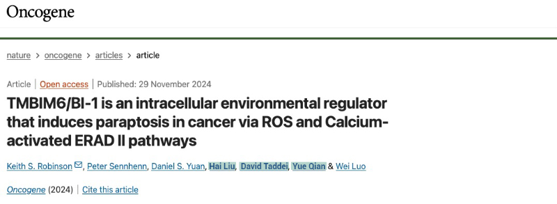 Robinson, K.S., Sennhenn, P., Yuan, D.S. et al. TMBIM6/BI-1 is an intracellular environmental regulator that induces paraptosis in cancer via ROS and Calcium-activated ERAD II pathways. Oncogene (2024). https://doi.org/10.1038/s41388-024-03222-x