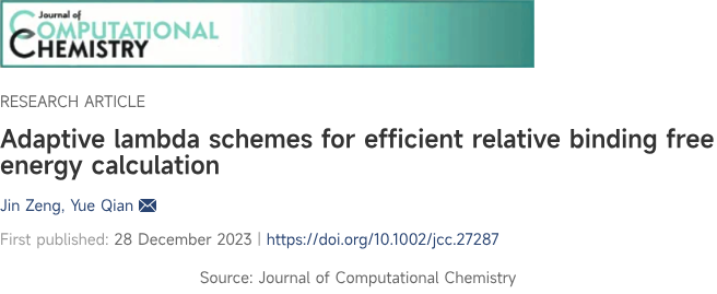 Recently, AIxplorerBio, a Viva Biotech portfolio company, published an article titled "Adaptive lambda schemes for efficient relative binding free energy calculation" in the Journal of Computational Chemistry. Dr. Yue Qian, Executive Director of Computational Chemistry at Viva Biotech, is the corresponding author of this paper. This is a highly productive collaboration between AIxplorerBio and Dr. Qian.