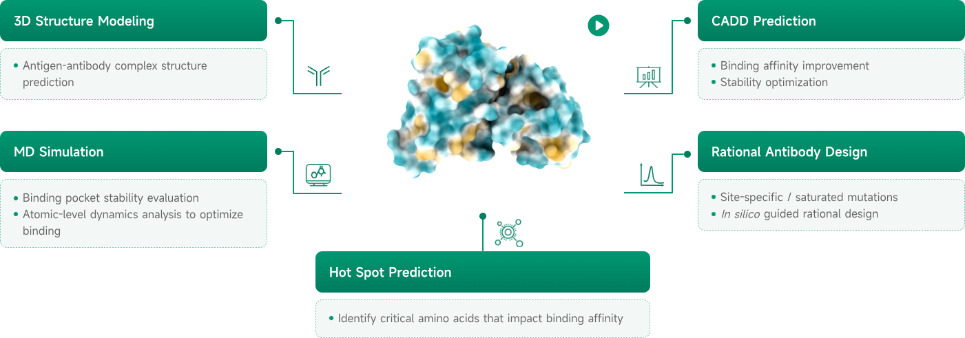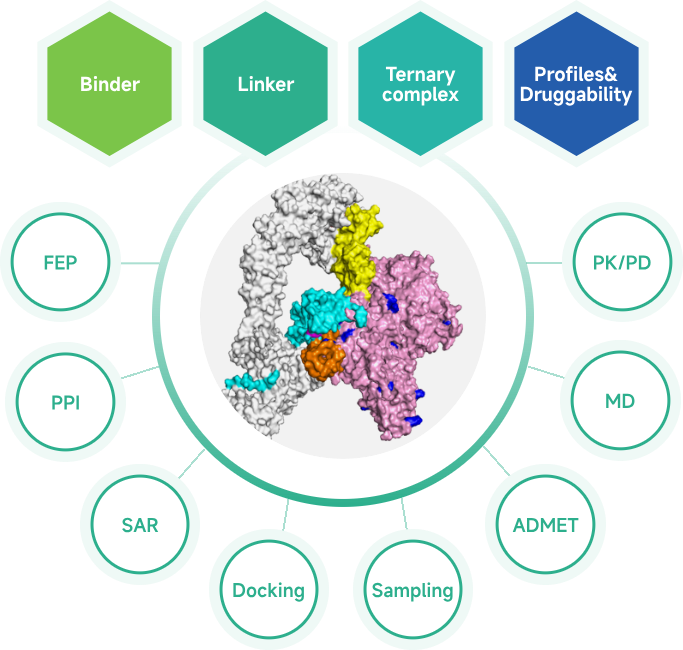 Leveraging the dual power of computation and experimentation, the Viva AIDD/CADD platform delivers integrated wet-and-dry lab solutions for diverse drug modalities. We provide an efficient optimization pathway at every stage of drug discovery by screening and refining molecules with multiple computational strategies. All results are validated through experimental methods, with feedback continuously used to optimize our AI models and strategies.