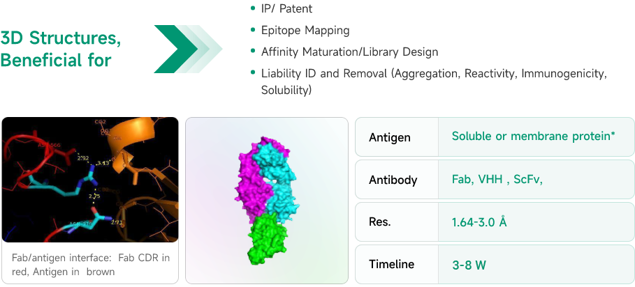 Antigen epitopes are the basis of protein antigenicity. Identifying protein antigen epitopes is of great significance for disease diagnosis and prognosis, site-directed modification of protein molecules, the design of non-toxic artificial vaccines, and biopharmaceuticals. Structural analysis of the antigen-antibody complex and the identification of antigen epitopes are of significant importance for improving antibody affinity, enhancing antibody stability, antibody humanization, the design of novel antibodies, and antibody patent protection. This is especially crucial in the field of antibody AI design, where antigen epitope analysis is paramount. In order to meet the needs of different customers and projects, Viva Biotech can also provide methods of antigen-antibody crystallization, hydrogen-deuterium exchange (HDX-MS), and Cryo-EM to analyze antigen epitopes.